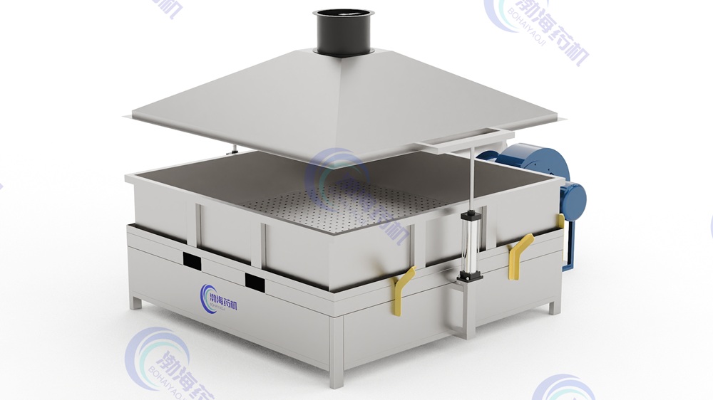 該機將經(jīng)熱交換器加熱的于凈熱空氣由風機送入烘箱,使物料干燥。能耗低、效率高、污染少。